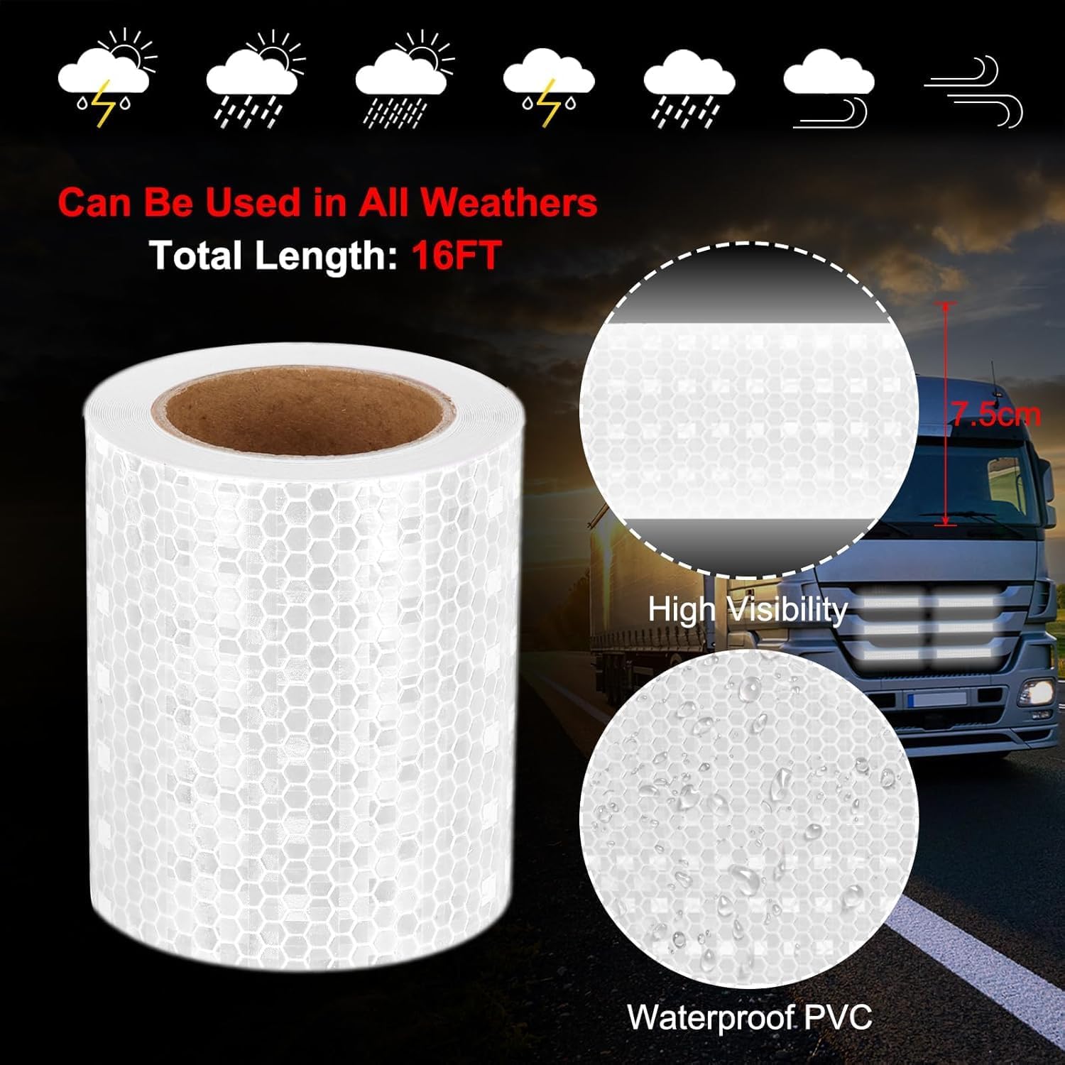 - HIGH VISIBILITY REFLECTIVE TAPE: 3 inch (7.62 cm) wide reflective safety tape provides excellent visibility in low light conditions and at night, enhancing safety for vehicles and bicycles